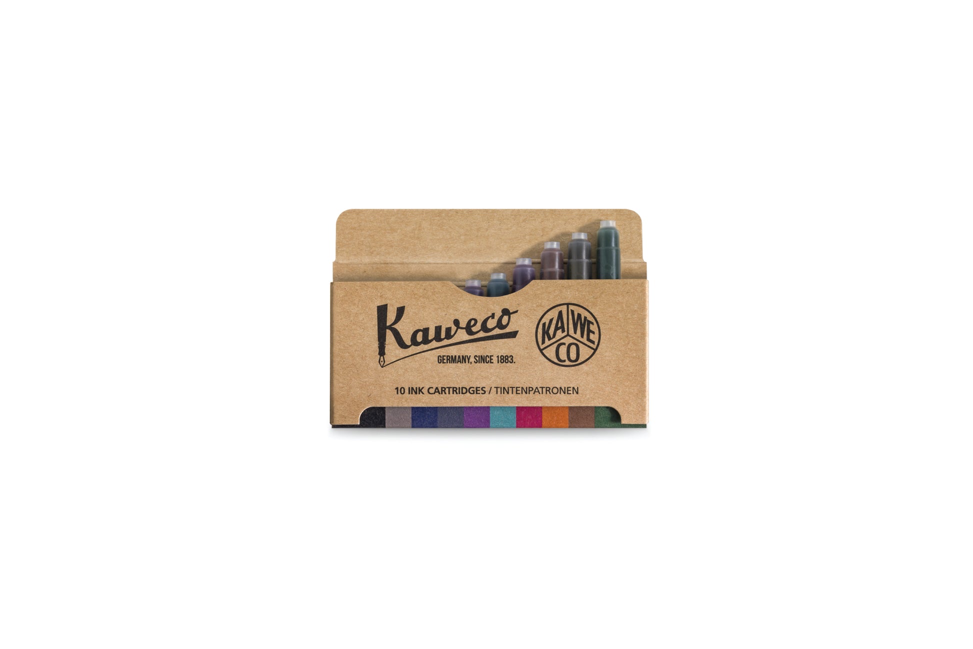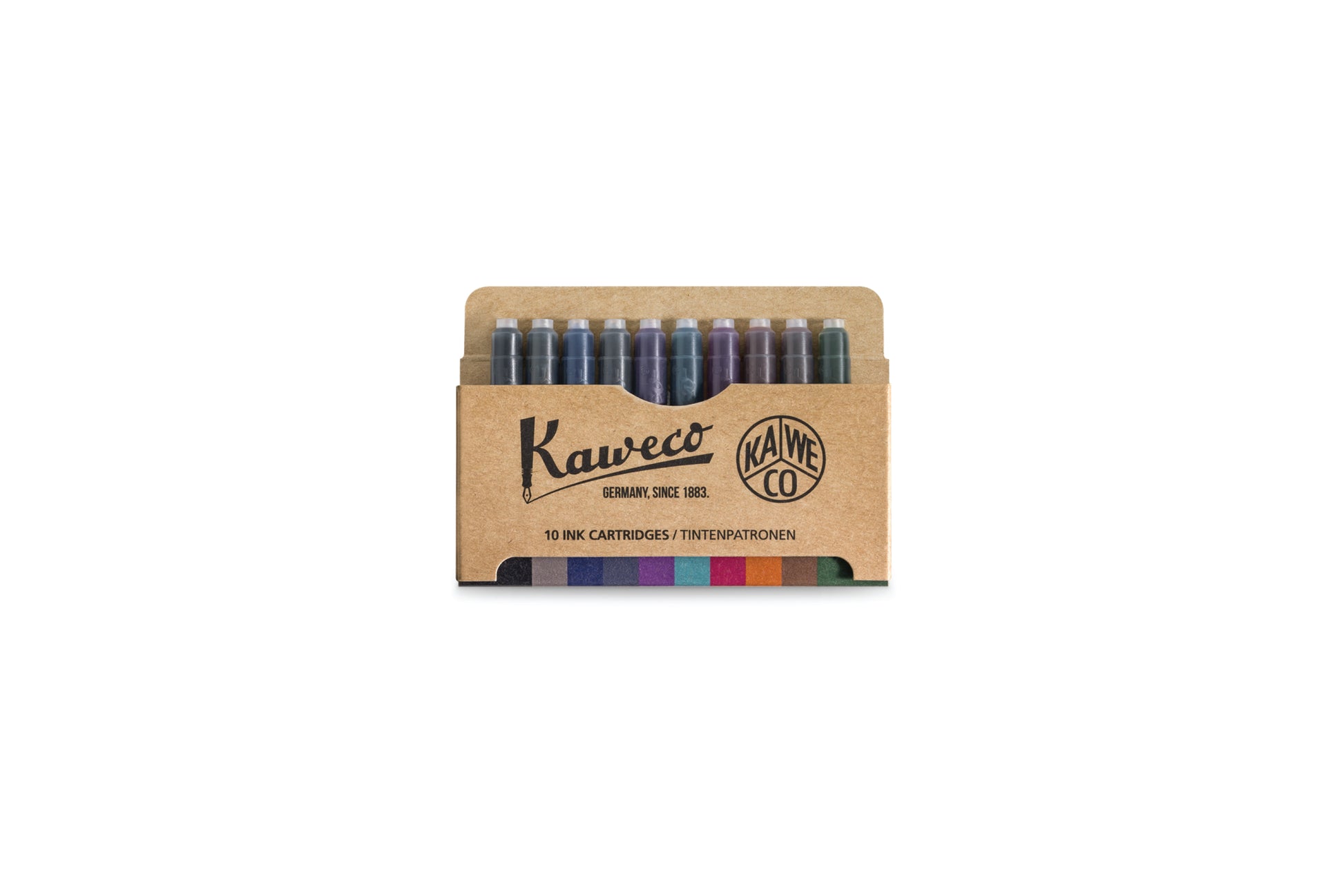 Balenie obsahuje spolu 10 ks zásobníkov (bombičiek). Každý zásobník je naplnený inou farbou originálneho atramentu Kaweco v objeme 1 ml.