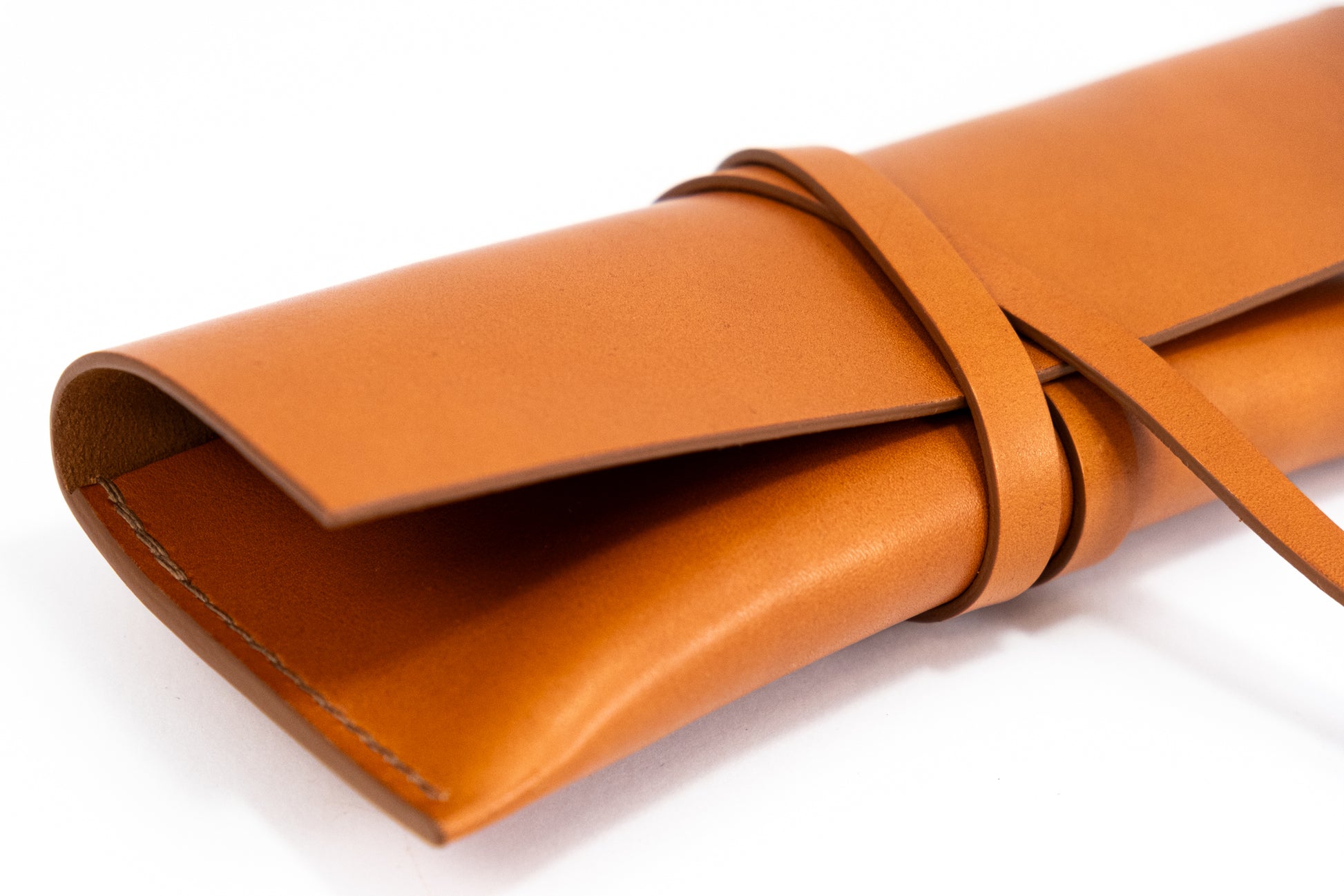 Peračník Augusta je vyrobený z pravej hovädzej kože karamelovej farby a má hladký povrch, ktorý je z vonkajšej strany upravený tak, aby odolal nečistotám a čiastočne aj vode. Šitý je výhradne ručne, tradičným sedlárskym stehom, ktorý na rozdiel od strojového šitia zabezpečuje maximálnu trvanlivosť spojenia. Hrany peračníka sú na záver profesionálne spracované, ručne vyhladené, nafarbené a nakrémované.