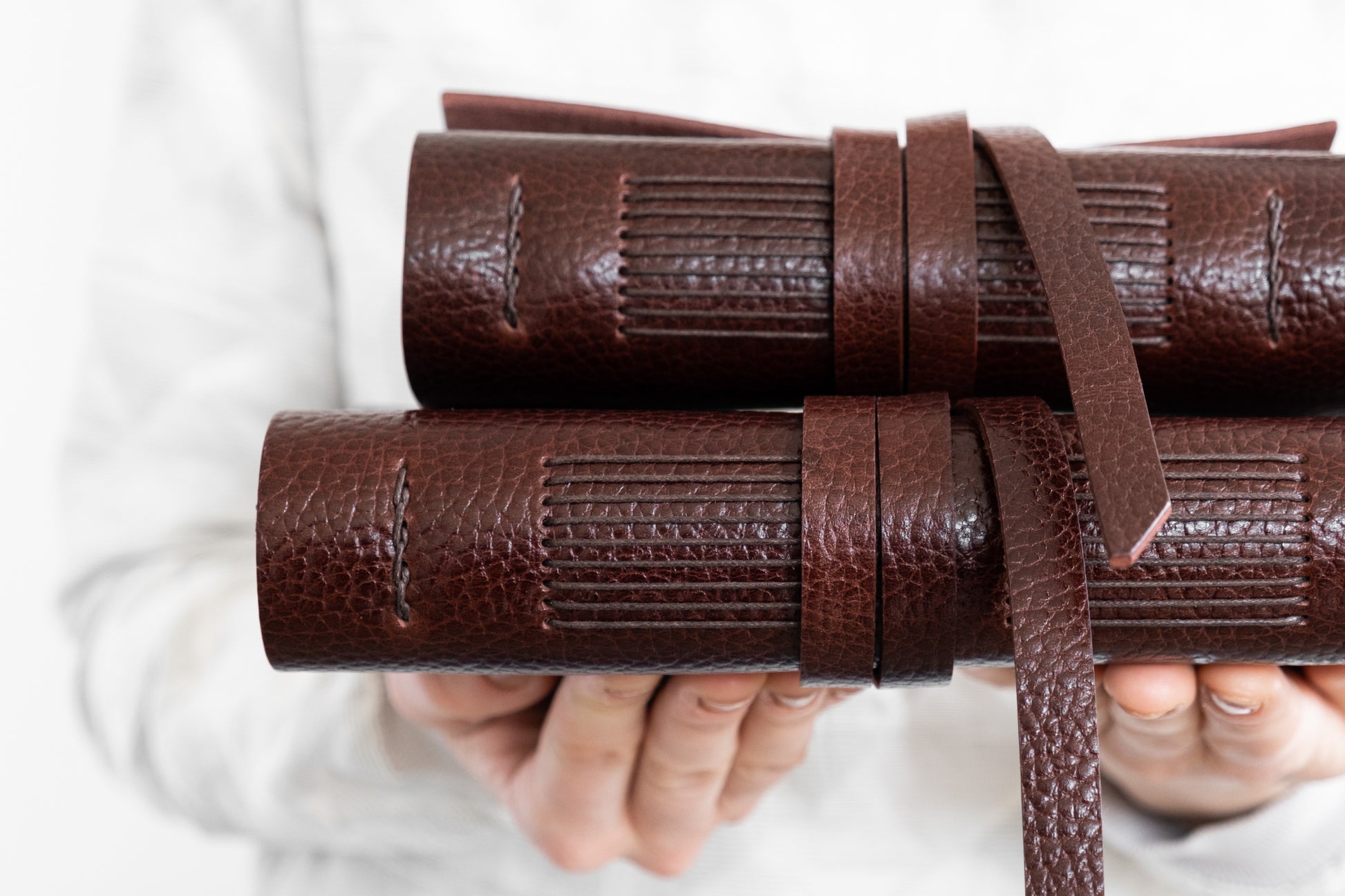 Pre nepravidelnú povrchovú štruktúru a farbu koženého obalu je každý jeden zápisník z tejto kolekcie málo iný, a teda sa môže málo líšiť od zápisníka na tejto fotografii.