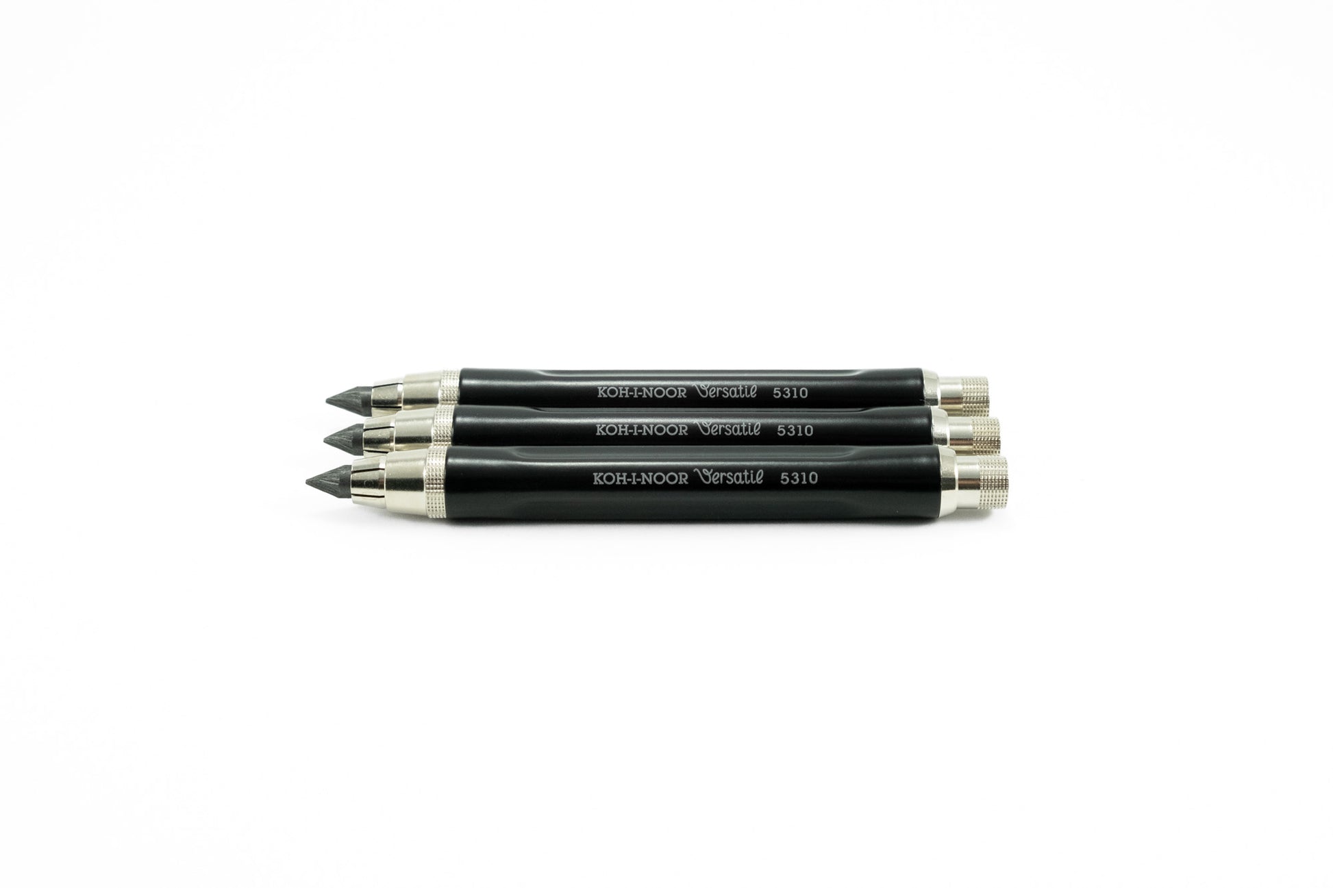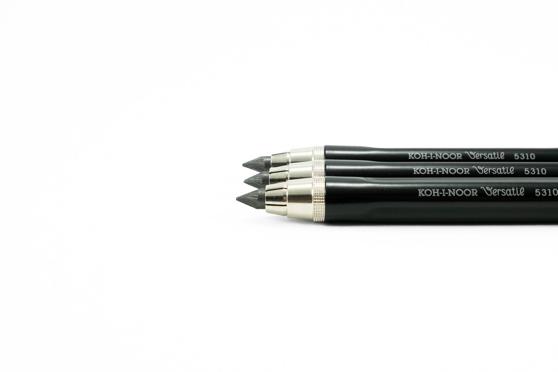 Aj mechanická ceruza pre hrubšie tuhy má svoju kratšiu alternatívu. Je ňou táto versatilka v celokovovom čiernom plášti, ktorý má netradične kruhový profil s tromi tvarovanými drážkami pre pohodlné uchopenie.