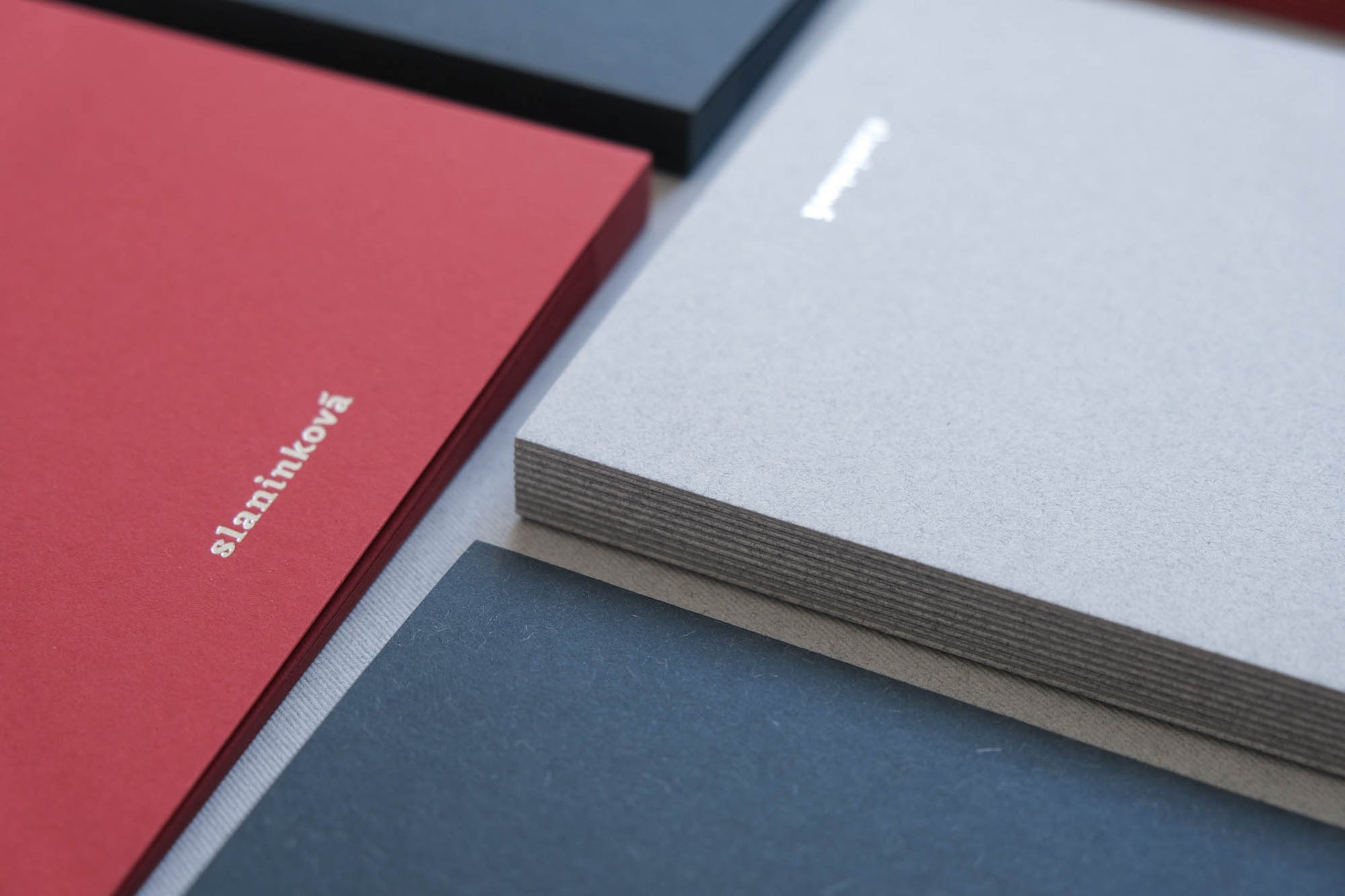 Albumy sme okresali na čo najjednoduchšie prevedenie a nechávame na nich vyniknúť krásu ekologických talianskych papierov – tie vznikajú recykláciou – do papierovej hmoty sú pridávané zvyšky už inak nevyužiteľných surovín. V tmavomodrom albume je možné vidieť zvyšky vlny, v svetlomodrom albume zase zbytkovú rifľovinu a v červenom albume čiastočky z čerešní.