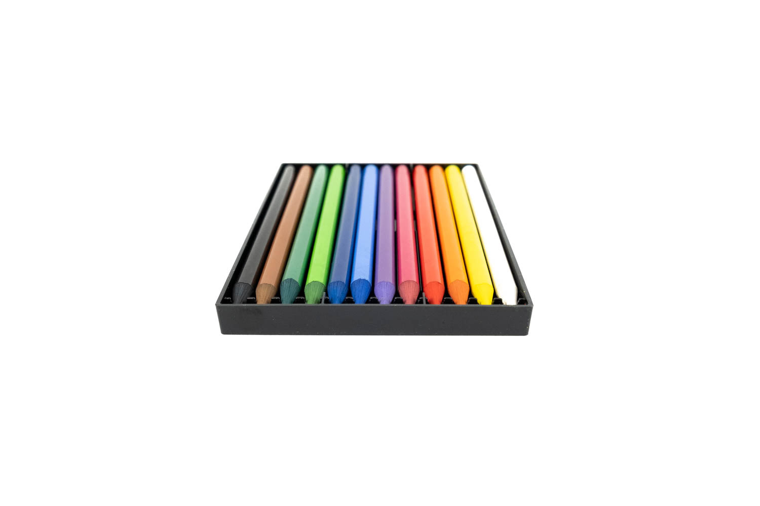 Pastelky Progresso sú známe tým, že nemajú drevený plášť. Sú okrúhle a celý prierez je tvorený pastelovým jadrom, ktoré je navonok striekané lakom. Výborne sa hrotia a vzhľadom k ich prierezu sú ideálne pre vyfarbovanie väčších plôch.